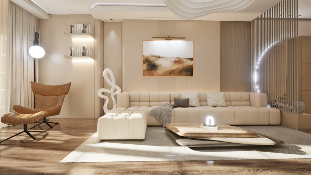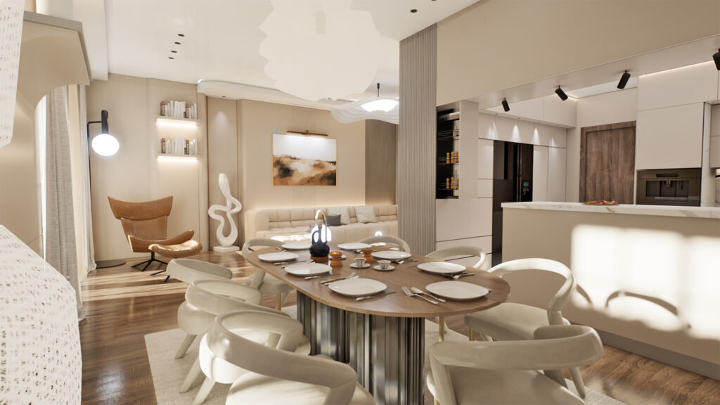 This turnkey residential fit-out project located in Jumeirah Village Circle (JVC), Dubai, blends minimalist luxury with contemporary interior design. Executed by Eighty8, the space showcases custom furniture solutions, innovative lighting features, and organic materials, tailored for a serene yet refined lifestyle. Designed with comfort and elegance in mind, the project reflects our commitment to smart space planning and bespoke joinery work for urban living
